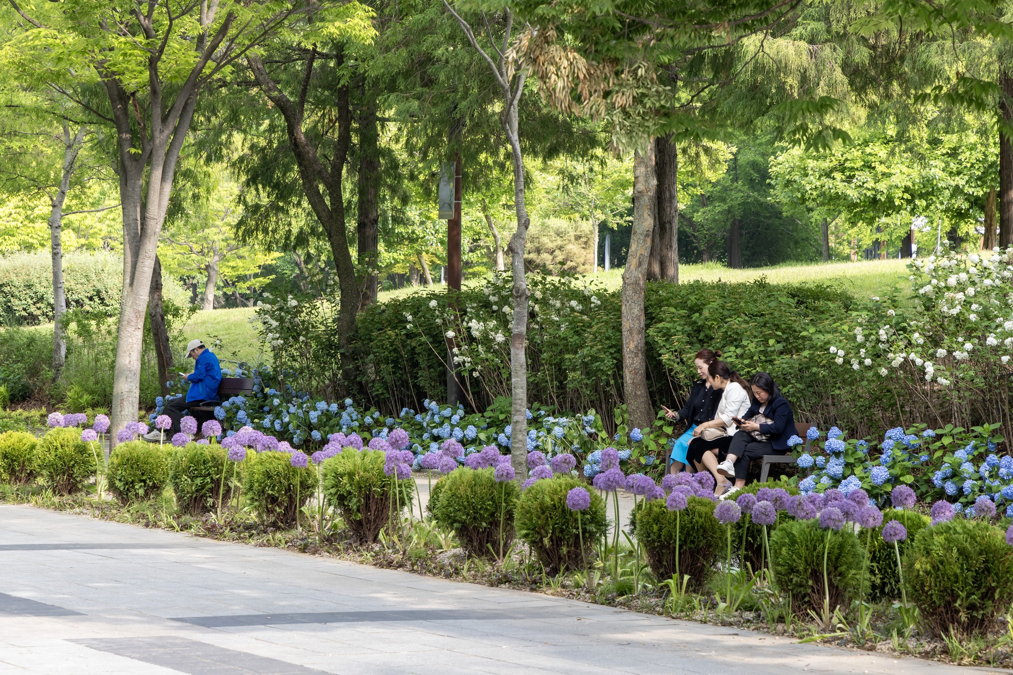 - 기존 공원의 우거진 큰나무 아래에 다양한 식물 레이어로 식재된 정원형 띠녹지를 조성해 단조롭던 하부 식생에 생동감과 입체감을 더했다. 풍성하게 구성된 공간은 시민들에게 다양한 볼거리와 소규모 이벤트를 즐길 수 있는 열린 쉼터이다.