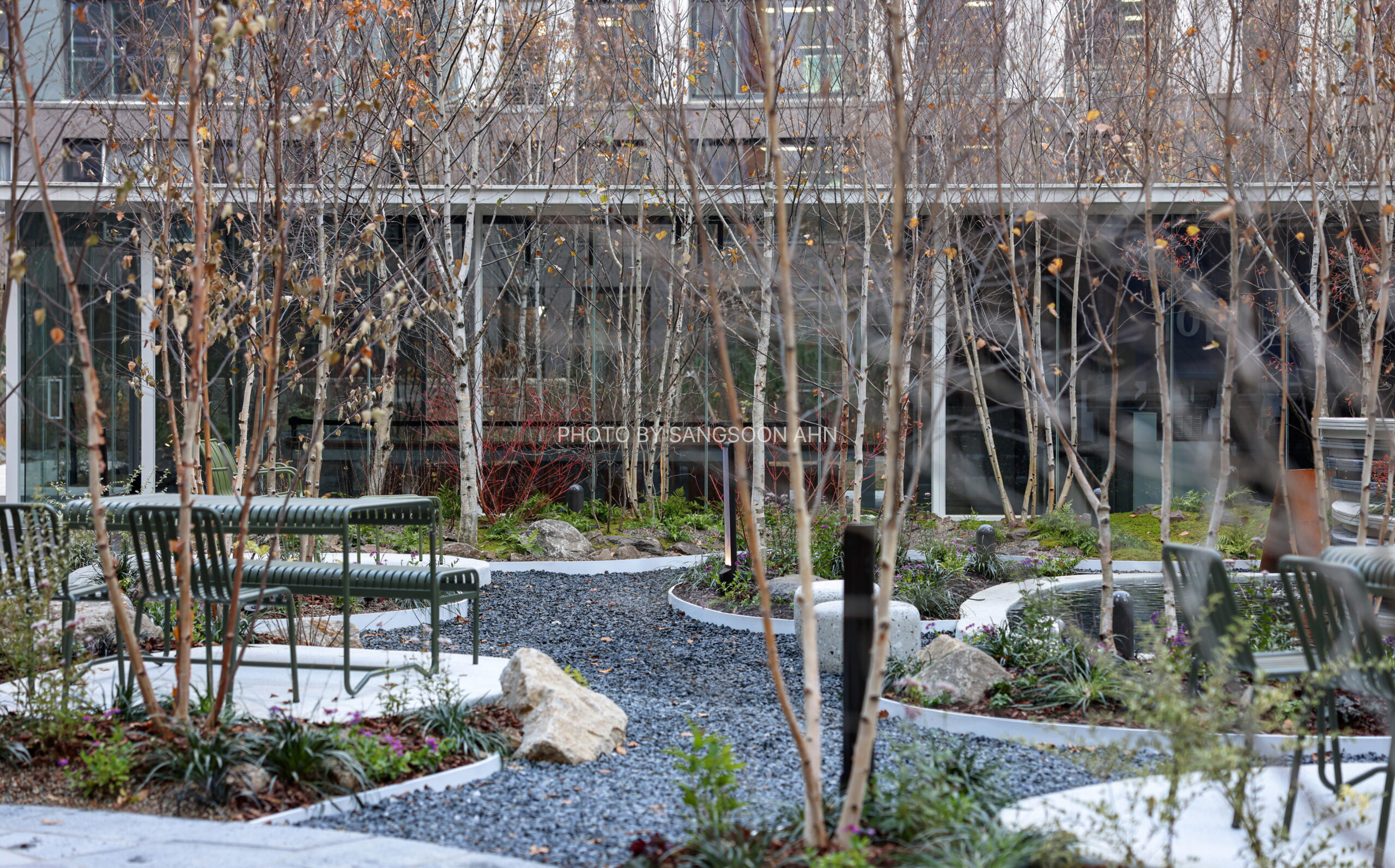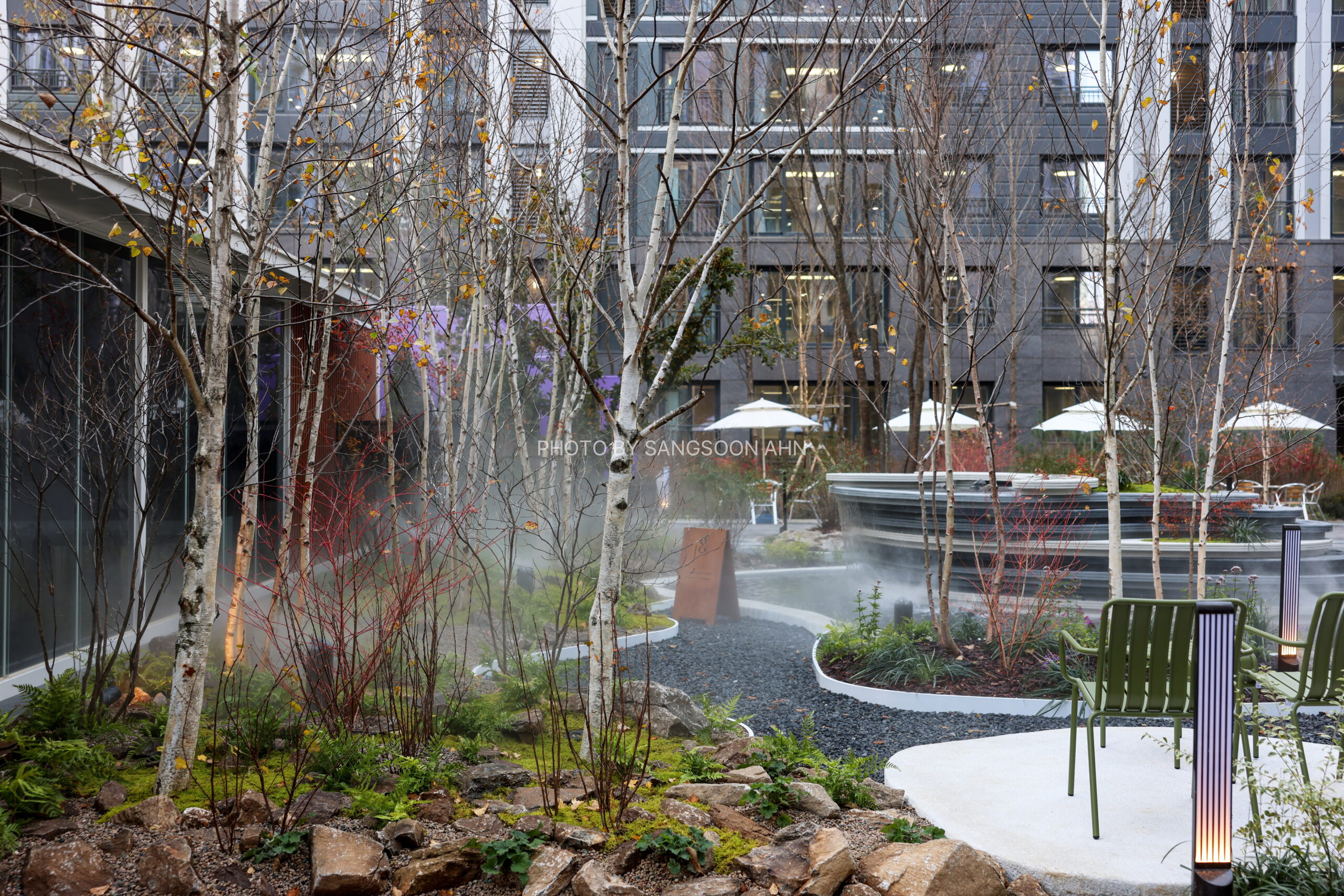 너른 초원 경관과 미스트가 은은하게 피어오르는 이끼 자락, 자작나무숲이 어우러져 원생의 고요함을 극대화한 이 정원은 일상 속에서 머무는 이들에게 깊고 편안한 휴식의 경험을 선사한다.